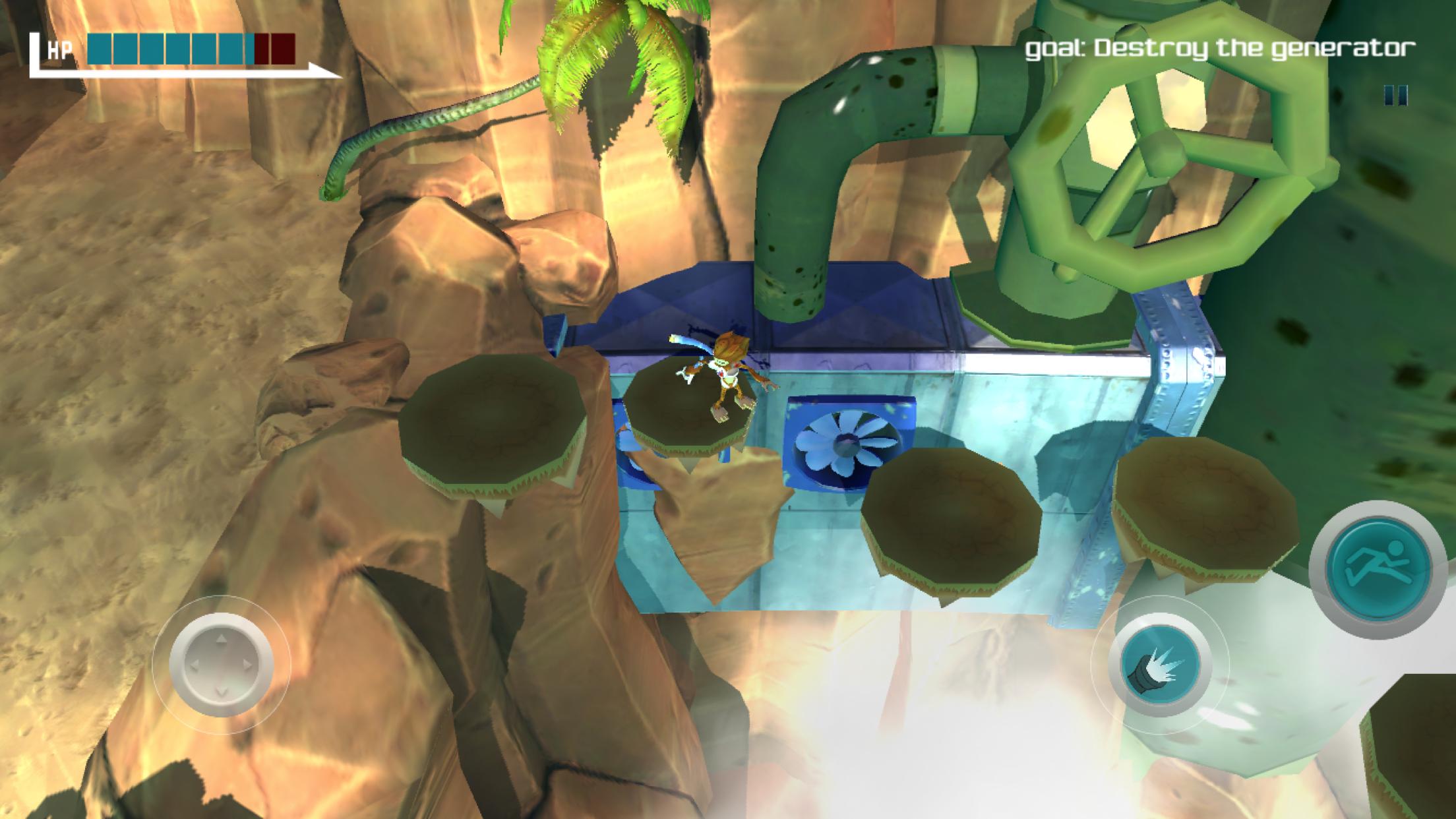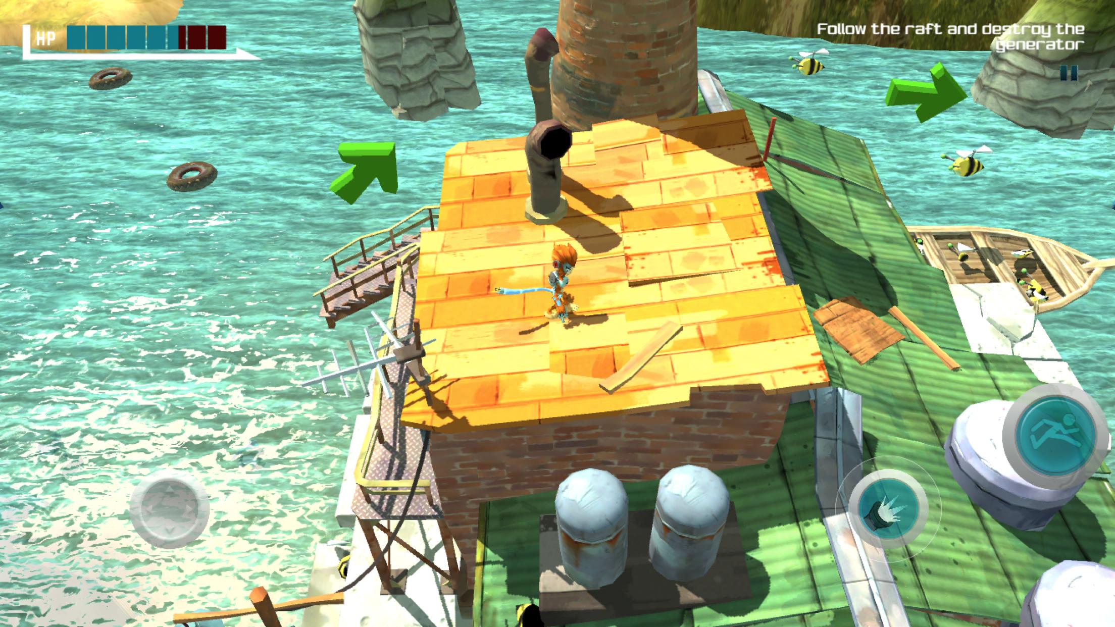 독특한 플랫폼 및 촬영 게임 플레이로 아름다운 3D 세계를 탐험하십시오. 사악한 원숭이 왕을 찾기위한 길을 점프하고 촬영하고 계획하십시오!